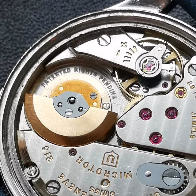 재미있는 사실은 cal.215의 개발 시점보다 1년 빠른 1954년에 최초로 마이크로 로터 무브먼트를 개발했던 뷰렌(Buren)사에서 유니버설 제네바를 특허권 침해로 고소했는데, 그 소송에서 유니버설 제네바가 패소하면서 로터 뒷 쪽에 위 사진처럼 ‘Patented Rights Pending(특허권 계류 중)’이라는 낙인을 찍어야 했다는 점입니다. 하지만 유니버설 제네바는 1958년에 독자적인 특허를 인정받으며 뷰렌과 함께 마이크로 로터 무브먼트의 강자로 자리잡게 됩니다.