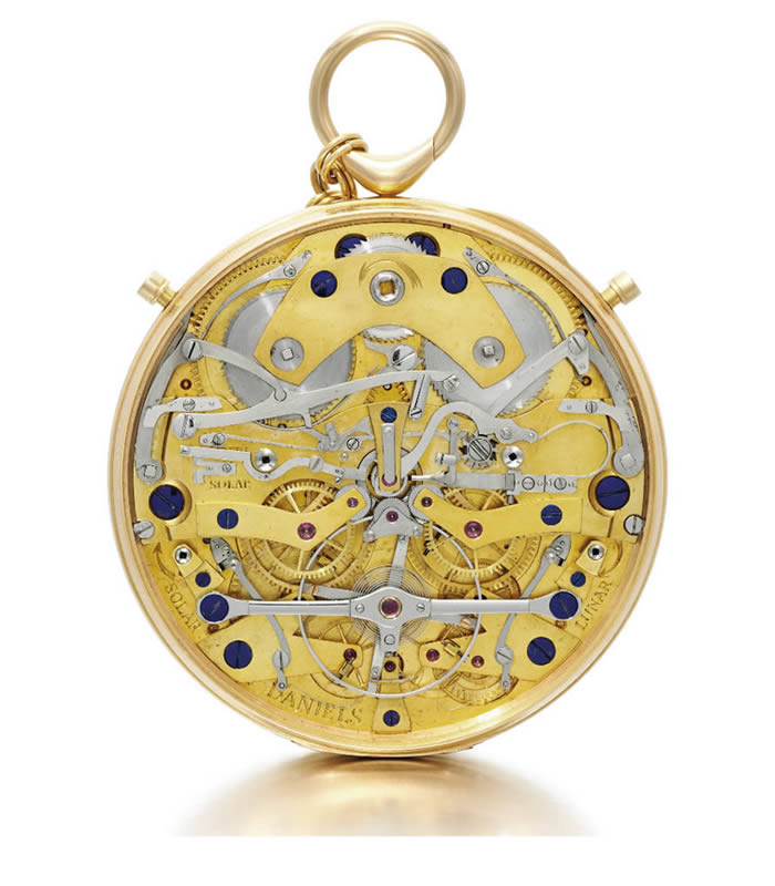 세월은 흘러 기술이 발전하자 브레게의 생각을 구현할 수 있는 여러 조각들이 맞춰지게 됩니다. 이때 등장한 천재 워치메이커 조지 다니엘스는 이 내추럴 이스케이프먼트를 응용한 회중시계를 만들게 됩니다.
