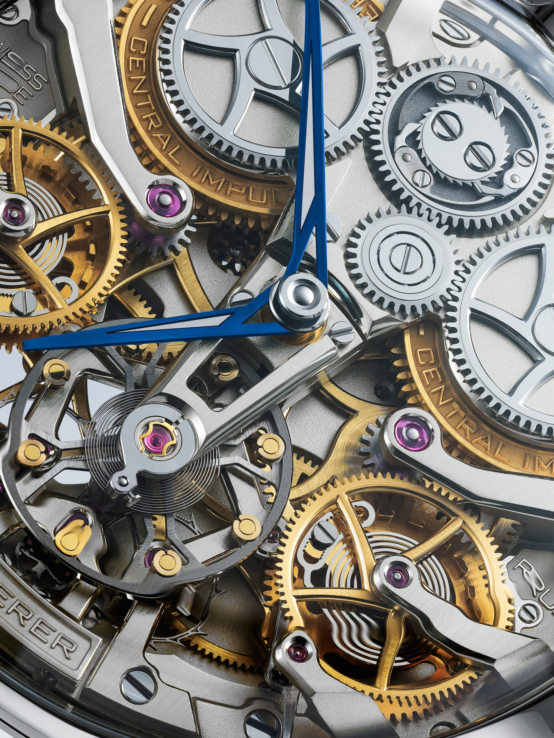 그렇기 때문에 레더러는 맨 처음 이 Central Impulse Chronometer를 구상할 때, 조지 다니엘스의 포켓 워치에서 개선된 내추럴 이스케이프먼트 시스템을 작게 만들어서 손목시계용으로 만들면 끝이라는 생각을 했었다고 합니다. 하지만 일이 그렇게 호락호락하진 않았죠. 처음에는 조지 다니엘스의 방식이 잘 작동하는 것처럼 보이지만, 시계의 파워리저브가 끝날 때쯤 진폭이 굉장히 낮아지는 문제가 지속적으로 발생하며, 외부 충격에 민감한 구조적 한계를 인식하게 됩니다. 레더러는 '한쪽 휠이 해방될 때, 작동 중인 이스케이프 휠의 톱니가 데탕트의 임펄스를 받는 팔렛을 미끄러지듯이 지나치고, 그러면 이스케이프 휠의 톱니를 1개, 심하면 2개까지도 놓치게 되는데, 이는 정밀도에 큰 영향을 미칩니다. 그리고 이건 저에게 정말 심각한 문제였습니다.' 라고 인터뷰에서 얘기했습니다.